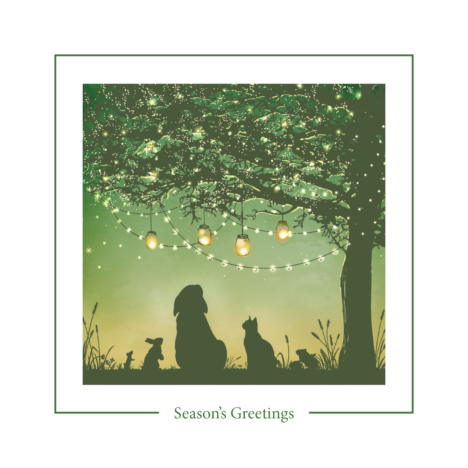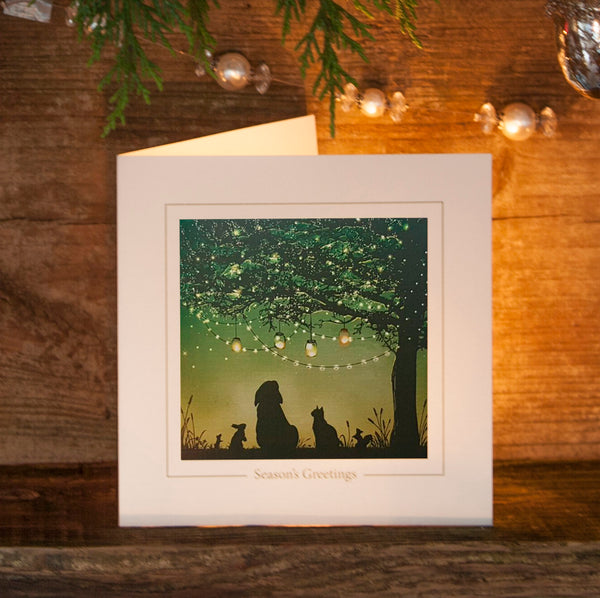 UNCUSTOMISED Christmas card, Christmas Lights, Small Animals